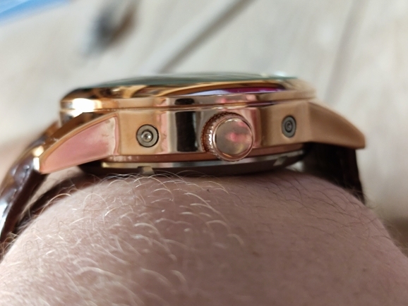 Watch beautiful best pictures, thin ideal size for my wrist, one more to my collection. Will buy another model which was admiring. Arrived super fast in 15 days am very happy and satisfied the quality to clasp bracelet leather. Thank you very much.